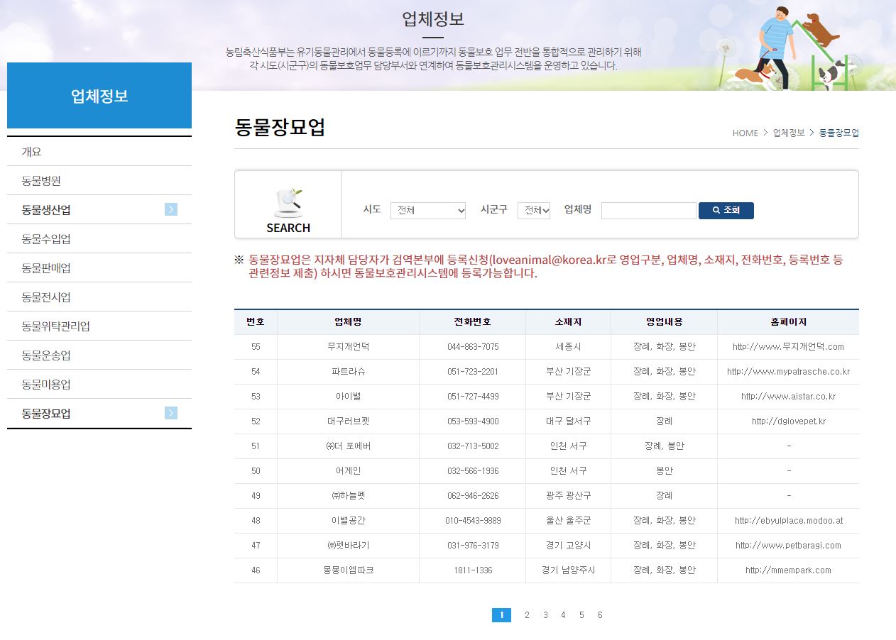 <<<< 동물보호관리시스템 동물장묘업 업체 찾기 >>>>