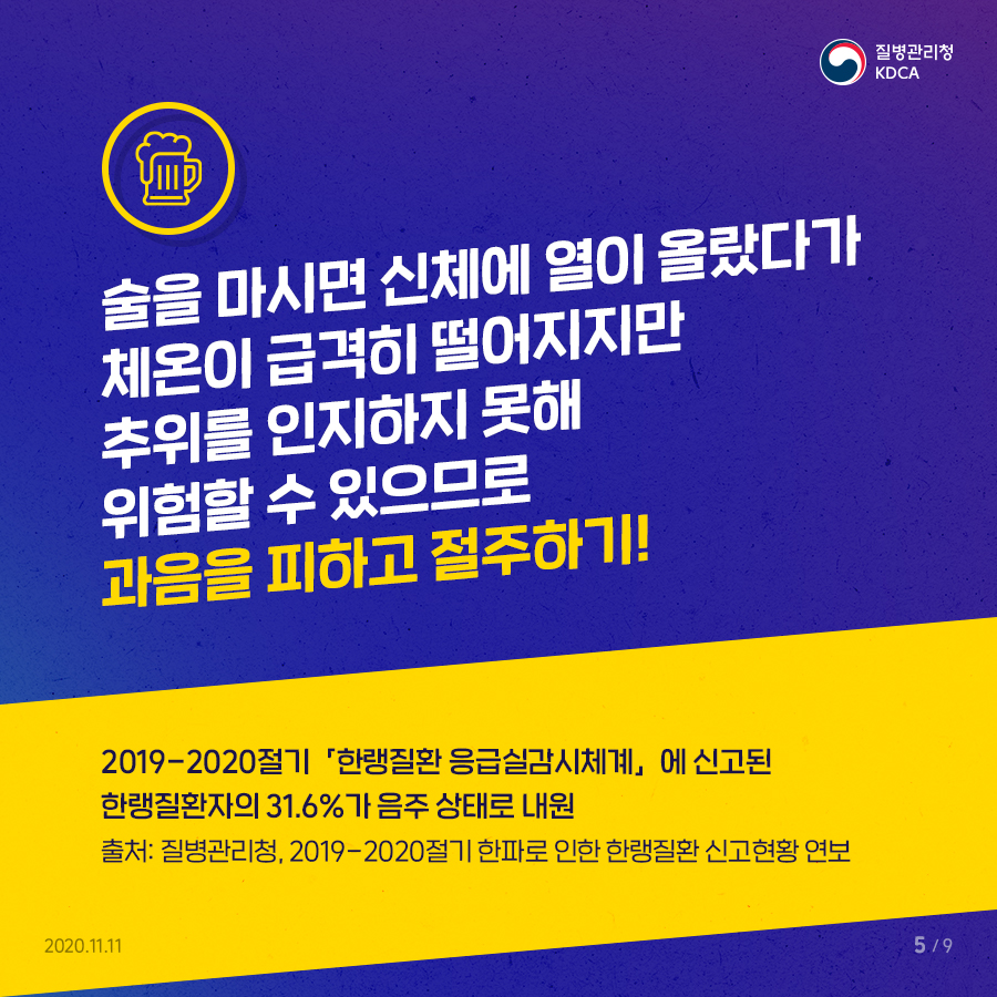 요즘 같이 한파에 한랭질환을 앓고 계시는 분들이 많이 있습니다. 꼭 외출 시에는 따뜻하게 보온에 신경을 써주시고 외출을 하시고 특히 고령자와 어린이 그리고 다른 질환이 있으시면 더욱더 신경을 써야 됩니다. 기본수칙을 잘 지키시어 건강하고 행복한 삶이 될 수 있도록 해야겠습니다~