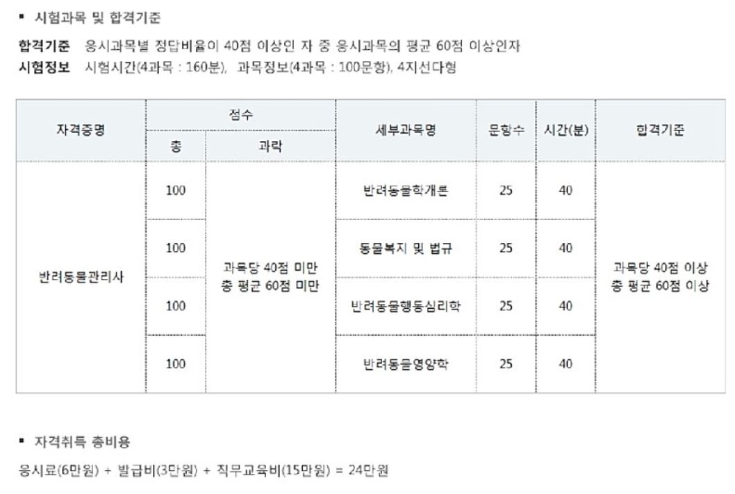 반려동물 총론 20문항 , 브리더입문 20문항, 팻 매니저 20문항, 팻 시터 20문항, 반려동물 장례학 및 행정 20문항
