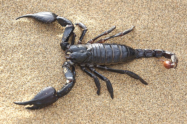전갈은 위협을 느끼게 되면 꼬리에 있는 독을 쏴서 적을 공격을 하며, 현재 애완용으로 많이 키우고 있는 전갈의 종류는 독이 약한 전갈이라 독에 쏘여도 몸에 큰 영향이 없다고 합니다.