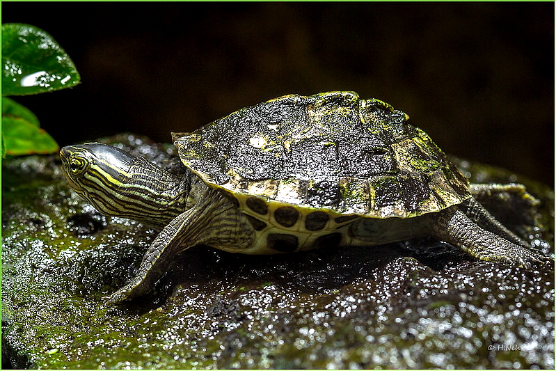 보석거북은 수질과 수온에 민감하고, 성격도 반수생 거북중에 매우 소극적입니다. 보석거북의 활박함은