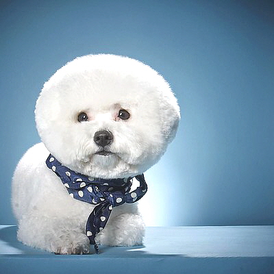 비숑프리제의 가장 큰 특징은 동그란 머리가 입니다. 털은 곱실거리는 겉 털과, 부드러운 속 털을 가지고 있습니다.