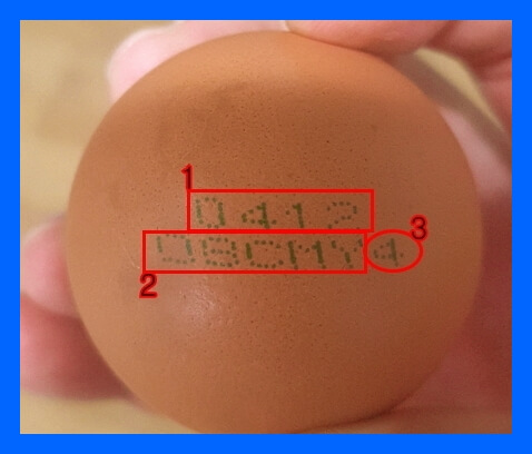 달걀을 보시면 다음과 같이 도장이 찍혀 있습니다. 도장의 숫자와 표기가 달걀의 정보를 보여주는데요. 알고 있으면 좀더 싱싱한 달걀을 선택을 할 수 있을 것입니다.