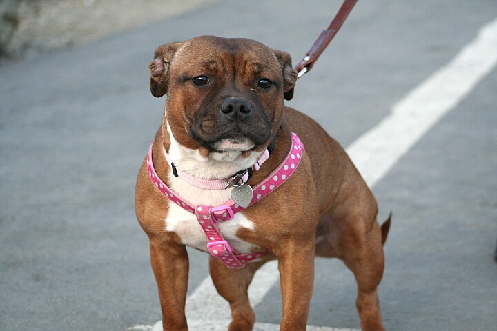 아메리칸 스테포드셔 테리어의 특징은 크기에 비해 강력한 인상이 특징이며 근육질도 민첩하고 주변상황에 민감하게 적응합니다.
