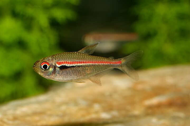 네온테트라의 원산지는 남아메리카의 아마존강 상류입니다. 몸길이는 약 45mm입니다. 카라신과에 속하는 열대어이며 카라신과는 아열대 기후 지역의 민물에서 서식을 합니다.