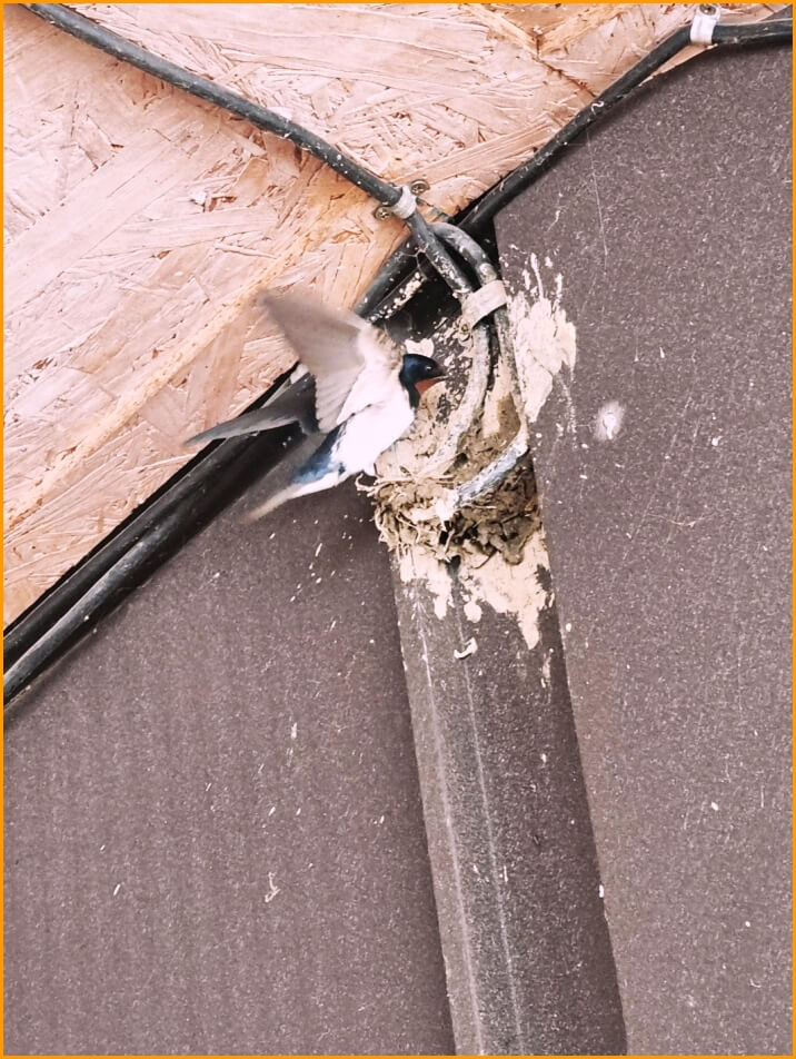 제비가 열심히 둥지를 만들고 있어서 자세히 살펴보니 지푸라기와 진흙을 물어다가 꼼꼼하게 쌓아올리더군요. 제비는 한국에서 3월에 돌아오며 6개월간 한국에 머물면서 산란 및 서실을 한 후에 9월에 월동지로 이동한다고 합니다.