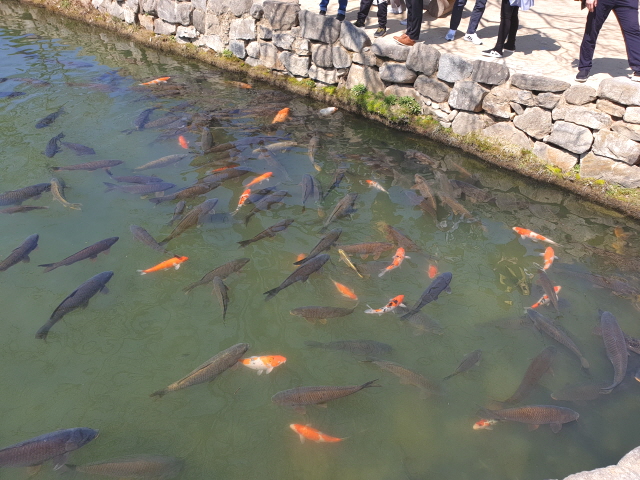 그리고, 관상용 잉어는 유적터, 관광지에 가면 많이 볼 수 있습니다. 사람 얼굴을 닮은 인면어를 비롯하여 정말로 어린아이 만한 크기의 잉어들을 쉽게 볼 수 있습니다.