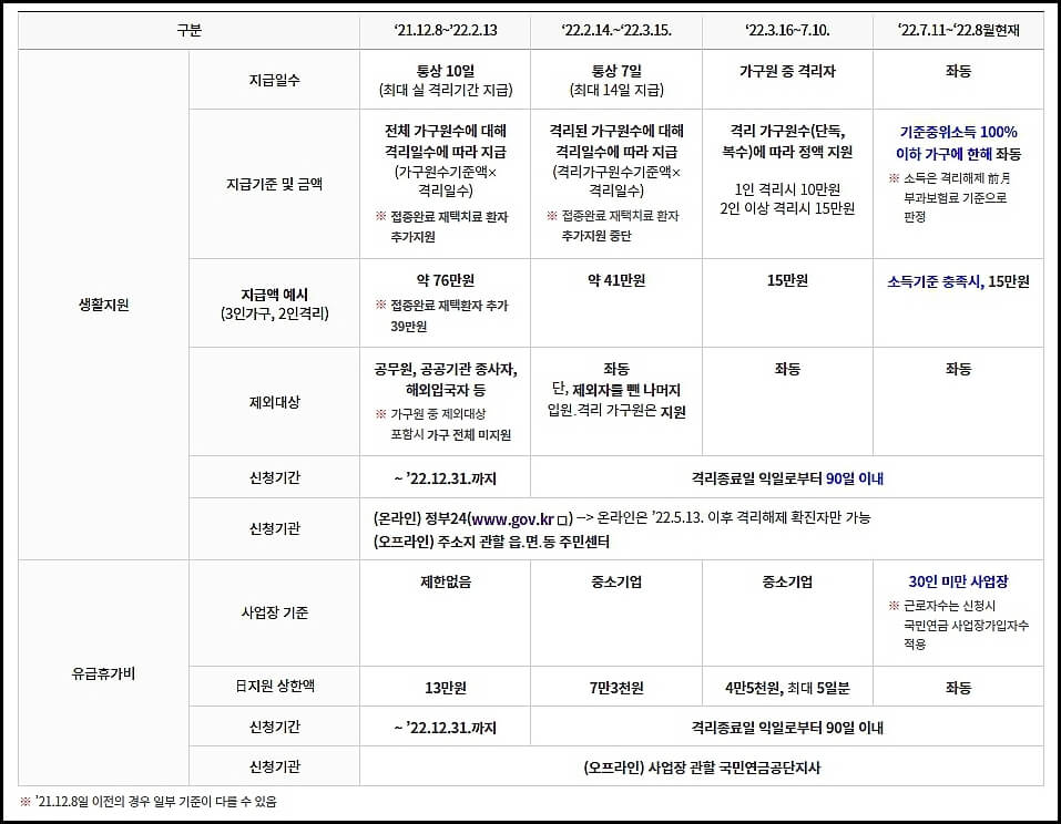- 7월 11일 이후 격리 해제의 경우 (건강보험료 기준 중위소득 100% 이하 가구만 신청 가능)