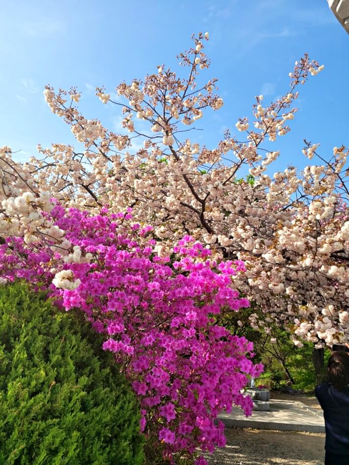 천안여행을 하면 각원사, 좌불상을 많이 가게 됩니다. 그런데 4월에는 각원사, 좌불상을 빛내주는 겹벚꽃이 있어서 더욱더 예쁘고 아름다운 장소가 됩니다. 각원사는 절이 크기 때문에 각원사주변을 돌아보는데 힐링이 되는곳 입니다.