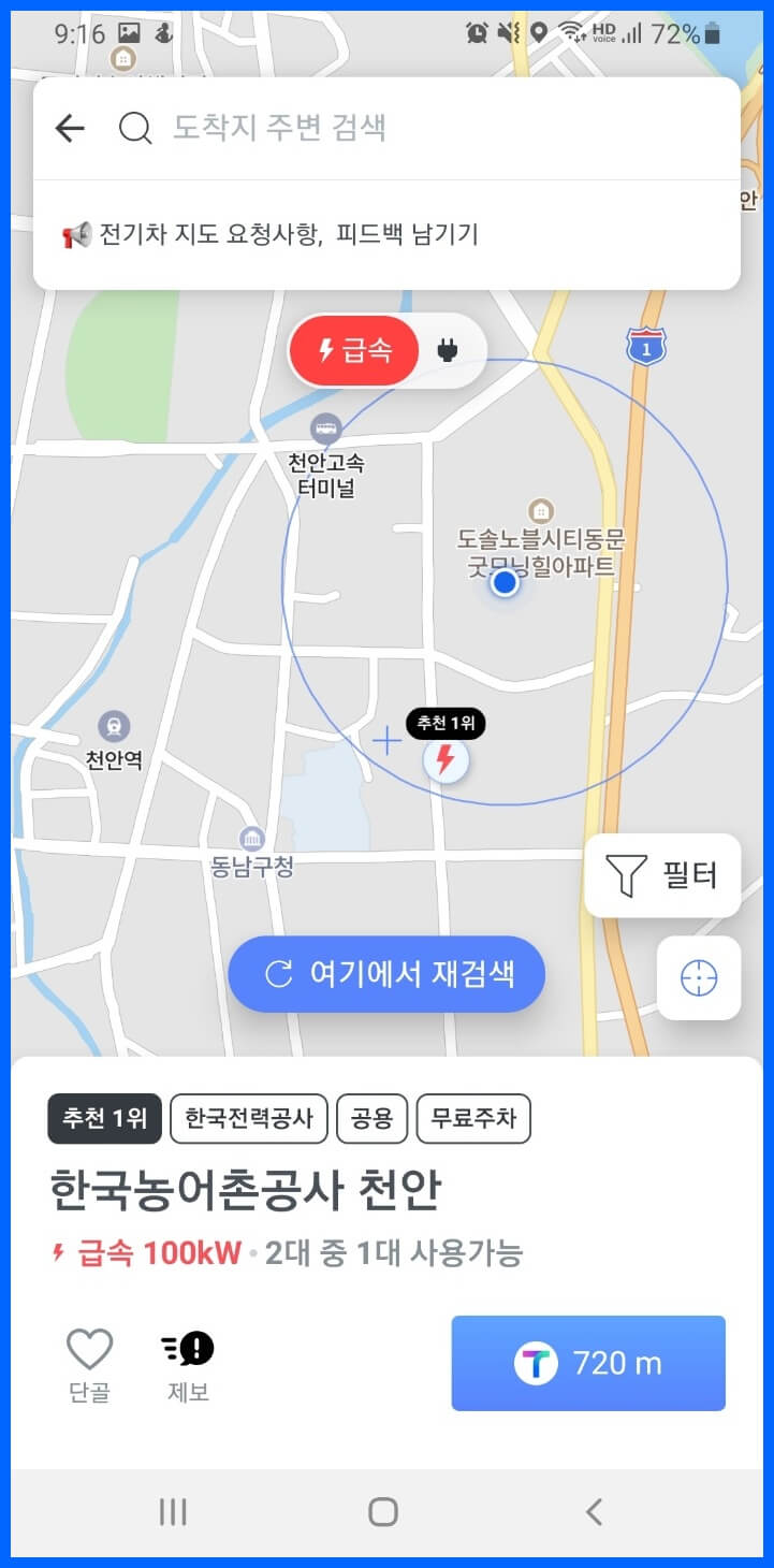 내 주변의 전기차 충전소도 찾기를 할수 있습니다. 다음과 같이 내 주변 전기차 충전소 찾기를 누릅니다.
