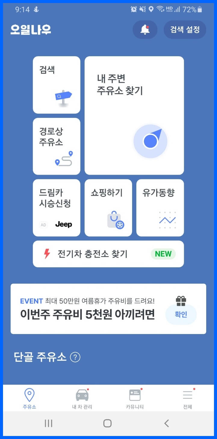 구글 플레이 스토어에서 오일 나우를 검색을 하여 휴대폰에 설치를 합니다.