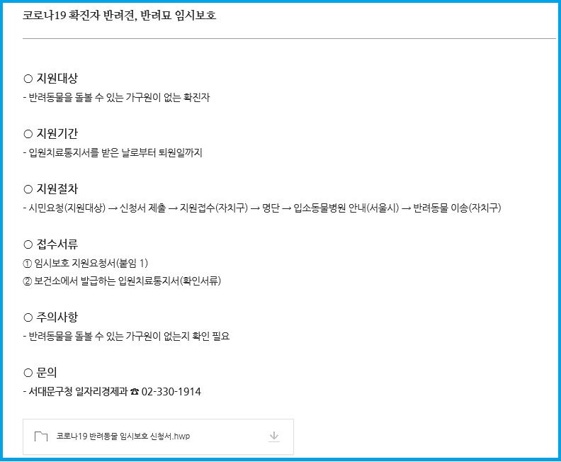 안녕하세요. 최근에 코로나19로 인하여 코로나 확진 판정을 받고 집에서 키우던 반려동물을 맡길 곳이 없어서 걱정을 하시는 분들이 많은 것 같습니다.