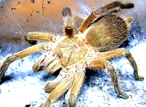 땅 위를 배회하며 생활하는 타란튤라로 주로 크기가 압도적으로 비대해지거나 아니경우 자신의 은신처를 형성해서 생활합니다.