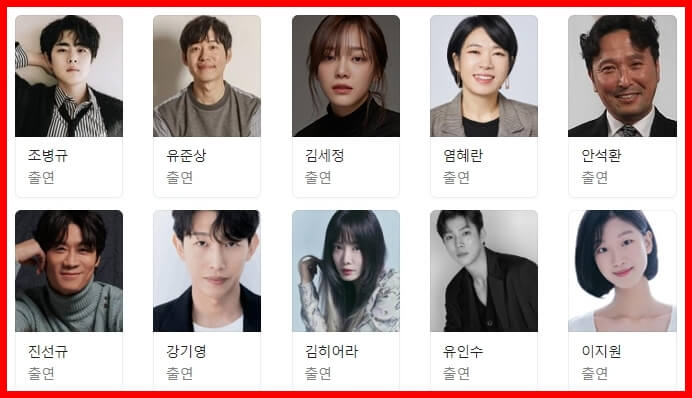 경이로운 소문2의 출연진들은 다음과 같습니다. 조병규, 유준상, 김세정, 염혜란, 안석환, 진선규, 강기영, 김히어라, 유인수, 김현욱 外
